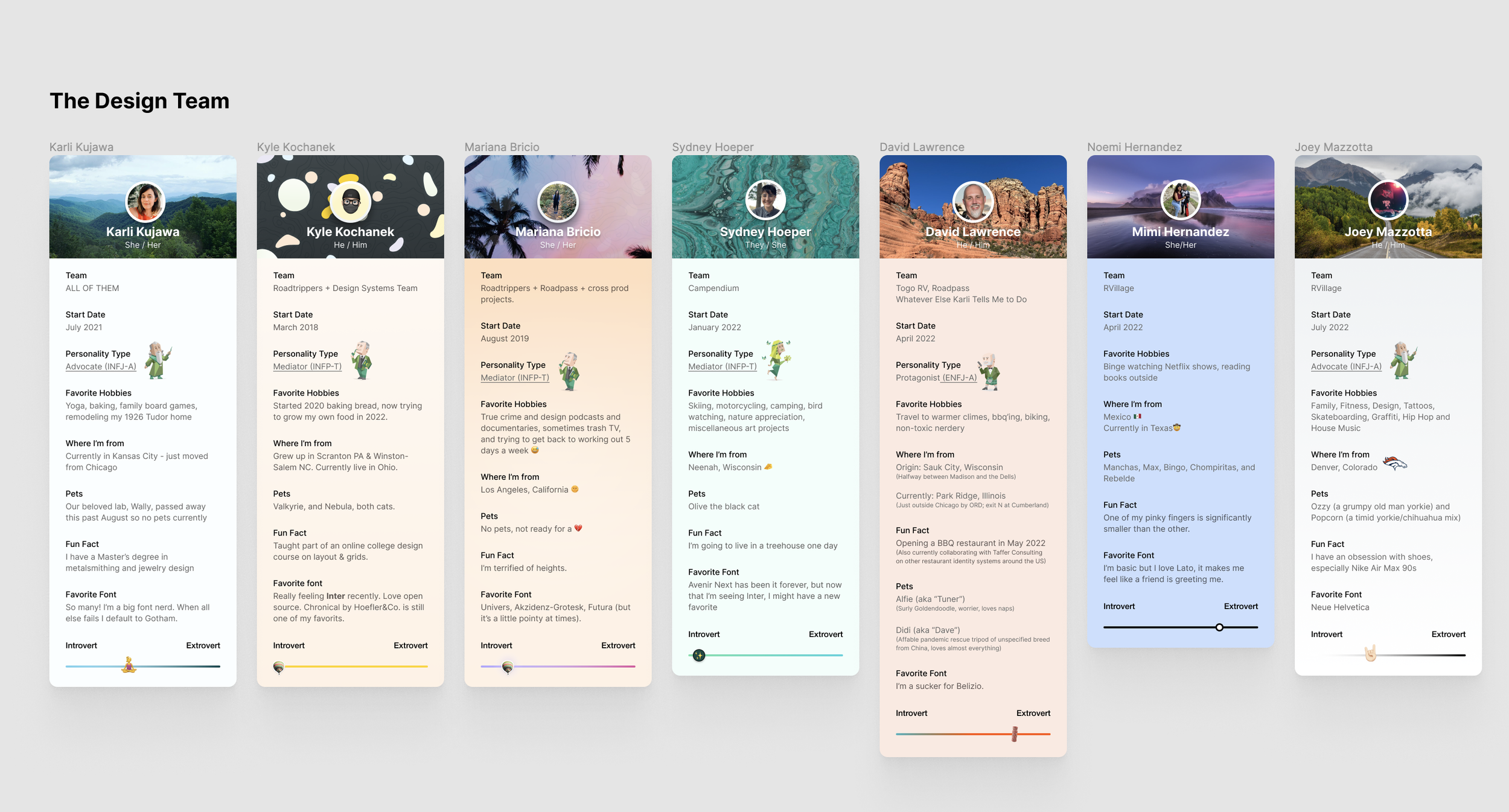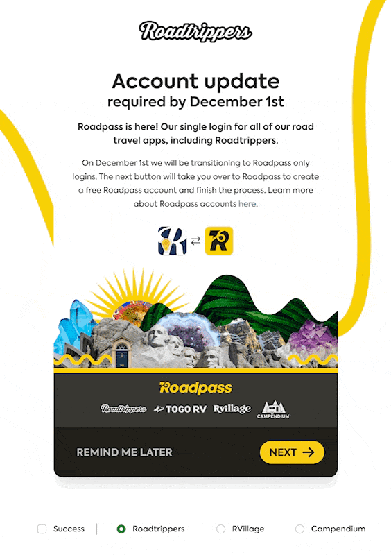 Through a series of acquisitions, my design team was responsible for the design of four flagship products - Roadpass. Roadtrippers, Campendium, and RVillage. In order to increase consistency, scalability, and speed to market I advocated and received funding for our first design systems team. This team included a principal designer, creative technologist, and a cross-brand council of product managers and engineers who worked together to ensure every component built would work across platforms. The result was Bonfire, our bespoke multi-brand design system built for Figma and React.